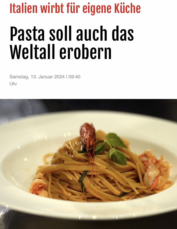 Lange Rede, kurzer Sinn. Der Artikel „Pasta soll auch das Weltall erobern“ ist äußerst lesenswert.