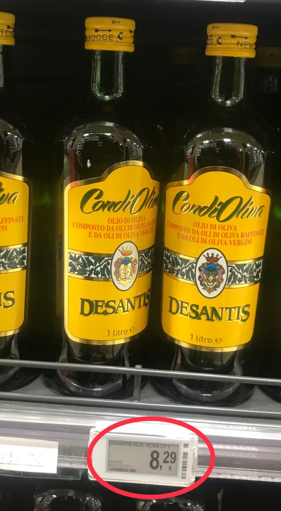 Wer ist bereit diesen im wahrsten Sinne des Wortes unverfälschten Preis zu bezahlen? In Supermärkten nördlich von Italien findet man die Flasche Olivenöl im Discounter für um die zwei Euro für 250 Milliliter. Das sind acht Euro für einen Liter. Dabei sollte man im Endeffekt auch noch beachten, dass an dieser Stelle noch der Transport zum Discounter hinzukommt, Kosten, die für den Supermarkt anfallen. Etwa Lager- sowie Verkaufsfläche und Löhne für das Personal. Wer ein gutes Olivenöl sucht und einen Preis pro Liter von unter 15 bis 20 Euro sieht kann sich gewiss sein, dass es sich dabei um minderwertiges bis gepantschtes Olivenöl, wenn überhaupt, handelt. Sabina Petrucci (Oliven-Bäuerin, 30 Kilometer nördlich von Rom) sagt in einem Interview gegenüber den „Südtirol News“ : „[…] Ein Liter reines Olivenöl kann nicht unter 13 bis 14 Euro verkauft werden. […]“. (Artikel erschienen am 21. Dezember 2023 unter dem Titel: „Olivenbauern in Italien geraten in Bedrängnis“). Weiterhin berichtet die 28-jährige, die mit ihrer Familie 75 Hektar mit Olivenbäumen bewirtschaftet davon, dass der Klimawandel ein großes Problem sei. In den Jahren zuvor hatte man mit der Dürre zu kämpfen, 2023 seien es wiederum die starken Regenfälle gewesen, die zum Verhängnis geworden sind und sich Oliven teilweise erst gar nicht gebildet hätte . Dies würde rein logisch bedeuten, dass der Preis für Olivenöl stark steigen müsste. Ist er allerdings nicht. Weder im deutschsprachigem Raum, noch hier in Italien. Die Exportmenge ist dennoch permanent. Wo kommt also das „Original“ italienische Olivenöl her? Wohl kaum aus dem 3D-Drucker. Wobei man zeitgleich auch anmerken muss, dass der Preis nicht unbedingt ein Indiz für die Qualität sein muss. Genauso wie der Aufdruck „Made in Italy“. Beides sind vage Anhaltspunkte, jedoch keine endgültige Garantie für Qualität. Wieder mein geliebtes Beispiel, wenn ich auf den Fiat 500 einen Mercedesstern aufklebe und ihn für 150 tausend Euro als S-Klasse mit Sonderausstattung anbiete, ist der Fiat noch längst keine S-Klasse.