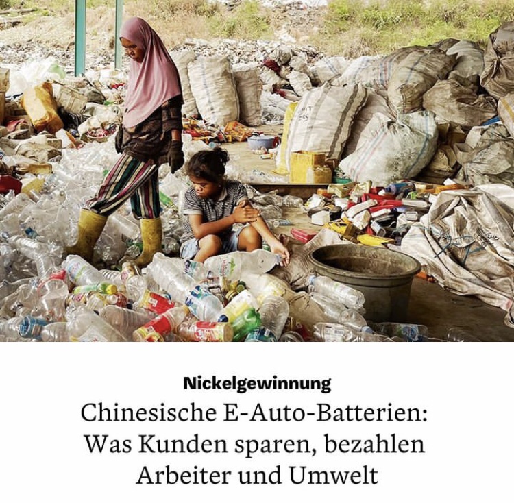 » […] Es ist eine apokalyptische Szene, als tue sich mitten im Paradies die Hölle auf: Eine Frau mit rosa Kopftuch stakst umgeben von toxischen Rauschwaden durch einen Haufen brennenden Mülls. Sie lächelt durch eine klaffende Zahnlücke. […] Als westlicher Besucher möchte man dem Elend ein Ende bereiten, oder zumindest einen Schuldigen finden: das chinesische Unternehmen zum Beispiel, das hier Nickel verarbeitet. […] «