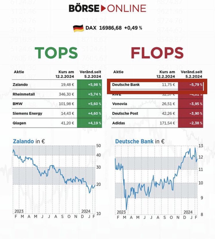Die deutsche Bank ist ein klein weniger g im Aktienranking wie Borderline. Mal im Hoch, mal im Tief. Doch was steckt dahinter? Wer die Deutsche Bank und deren Aktien beobachtet, wird schnell sehen und feststellen müssen, dass die Aktien einem schwankendem Kurs ausgesetzt sind. Beim Anlegen ist höchste Achtung geboten. Im fünf Jahres-Ranking ist zwar eine Steigerung festzustellen, jedoch mit starken Schwankungen.