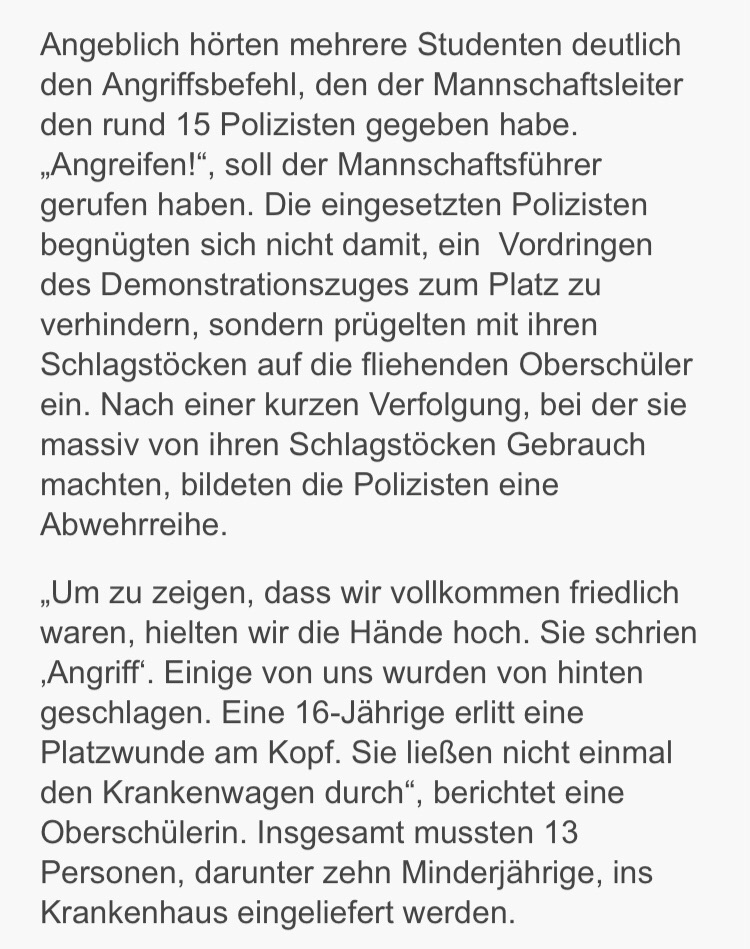Wieder ein niederschmetterndes Bild. Brutale Polizeigewalt bei einer eigentlich Friedlichen Kundgebung für ein Stück mehr Frieden auf der Welt …