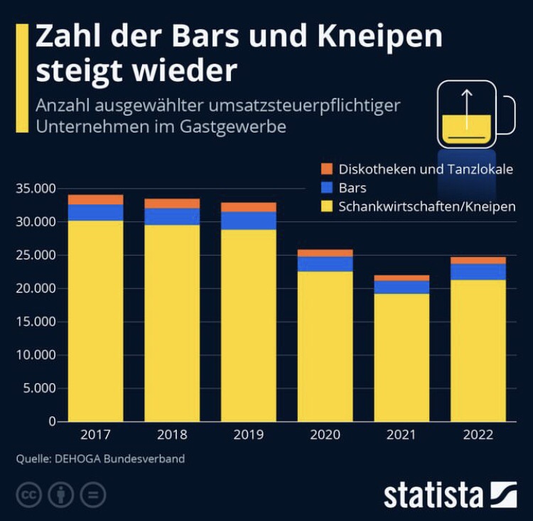Nach einer Veröffentlichung von Statista.de, die auf Zahlen der DEHOGA basieren, ist zu vernehmen, dass die Zahl der gastronomischen Einrichtungen wieder gestiegen sei. Ist dem wirklich so?